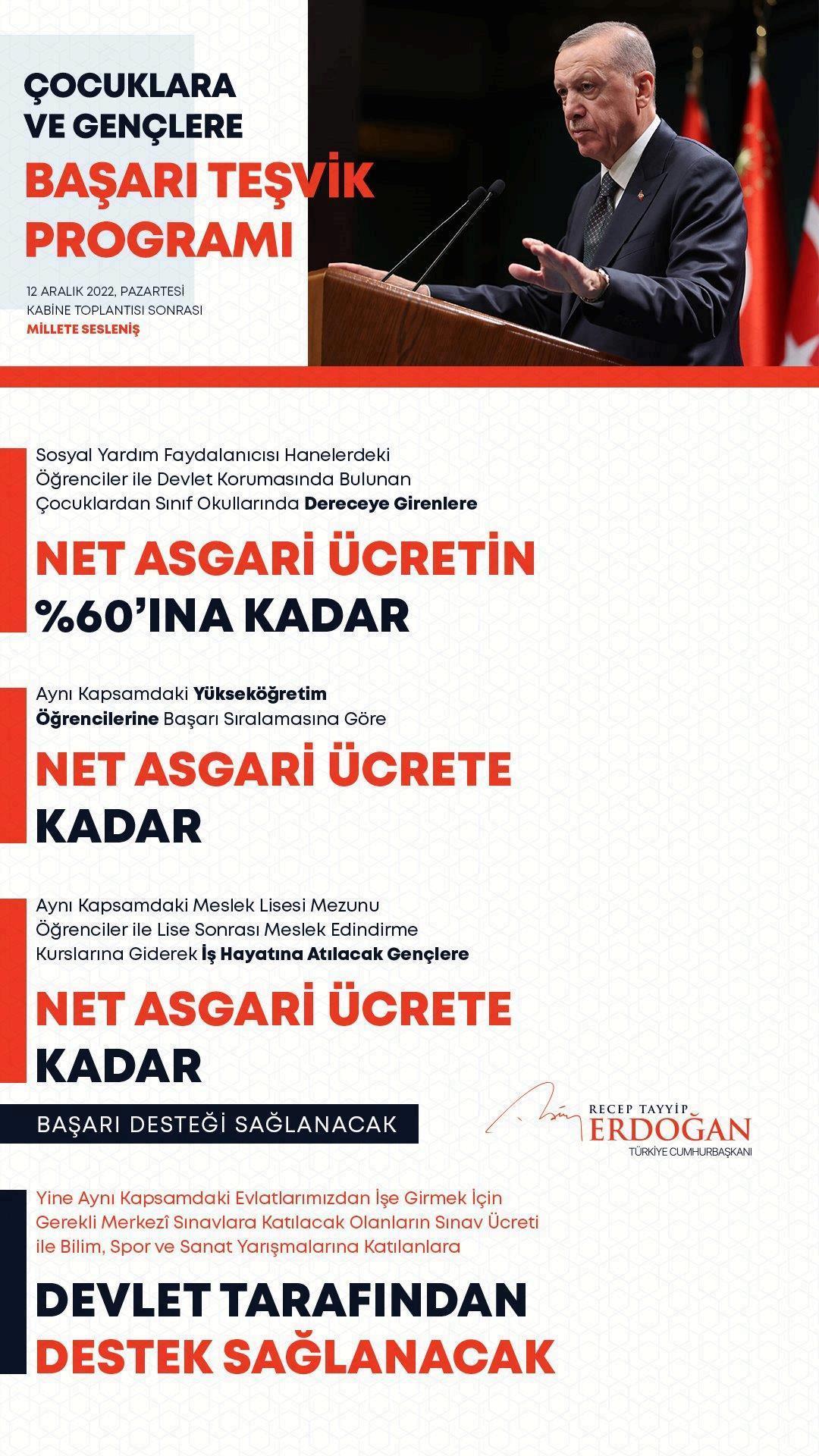 Cumhurbaşkanı Recep Tayyip Erdoğan yaptığı açıklamada karnesi iyi olan öğrencilere destek ödemesi ile ilgili şu ifadeleri kullandı: