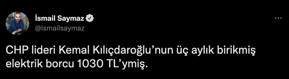Kemal Kılıçdaroğlu'na gelen 3 aylık faturanın ne kadar olduğu belli oldu. Selvi Kılıçdaroğlu adına olan abonelik, 3 aylık borcu ödenmediği için kesildi.