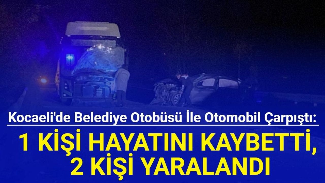 Kocaeli'nin İzmit ilçesinden bir son dakika haberi geldi. Belediye otobüsüyle otomobilin çarpışması sonucu 1 kişi hayatını kaybetti, 2 kişi yaralandı.