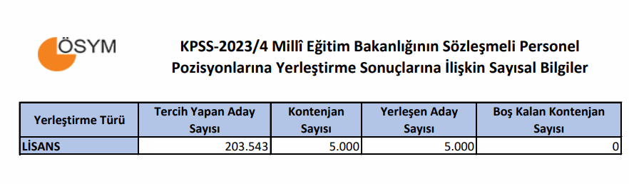 ÖSYM Başkanlığı tarafından bir son dakika açıklaması yapıldı. Yapılan açıklamada 2023/4 MEB 5 bin sözleşmeli kamu personeli alımı tercih sonuçlarının açıklandığına yer verildi. Peki tercih sonuçları sonucu KPSS taban puanları ne oldu?