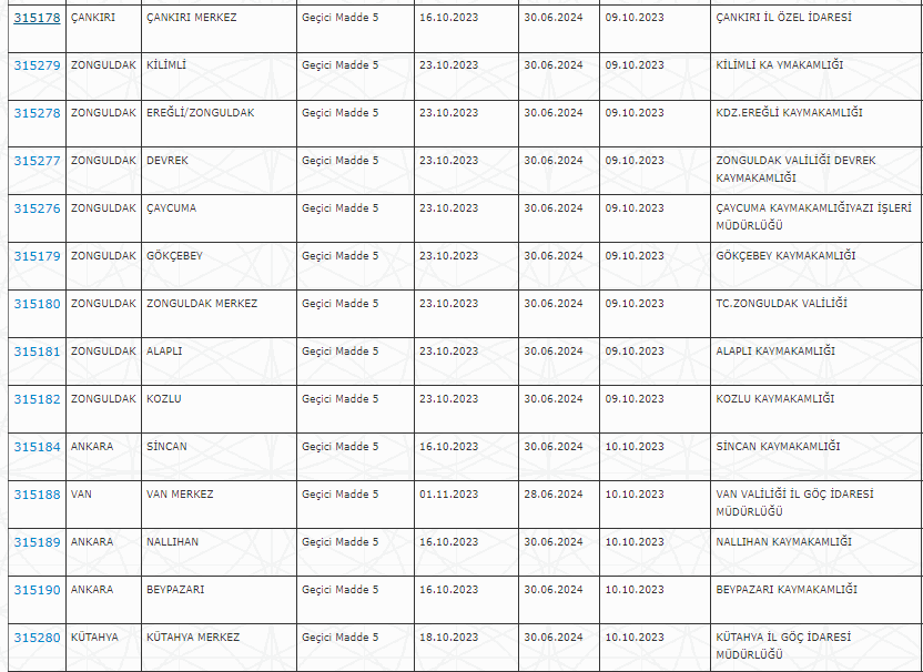 TYP kapsamında yapılan personel alımında adaylar aşağıdaki illerde çalıştırılacak: