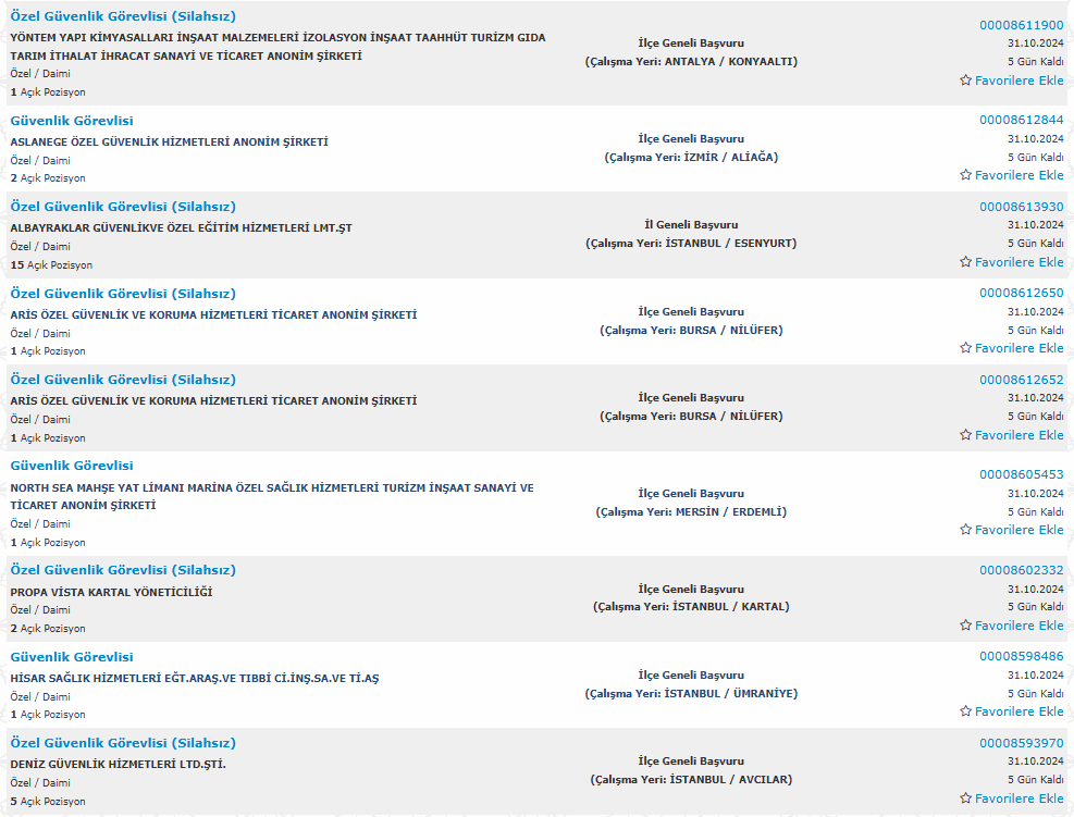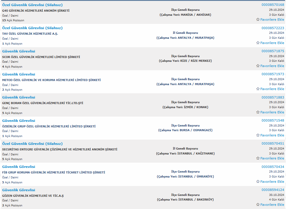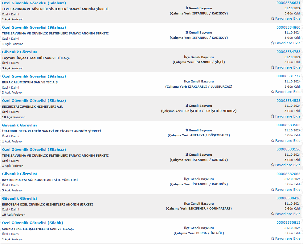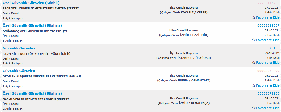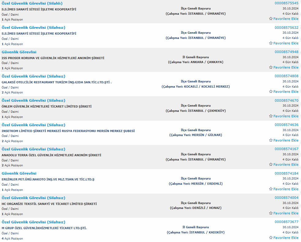Türkiye İş Kurumu üzerinde yayınlanan duyuruda özel güvenlik görevlisi kadrosuna yapılacak alım şu şekilde yer verildi: