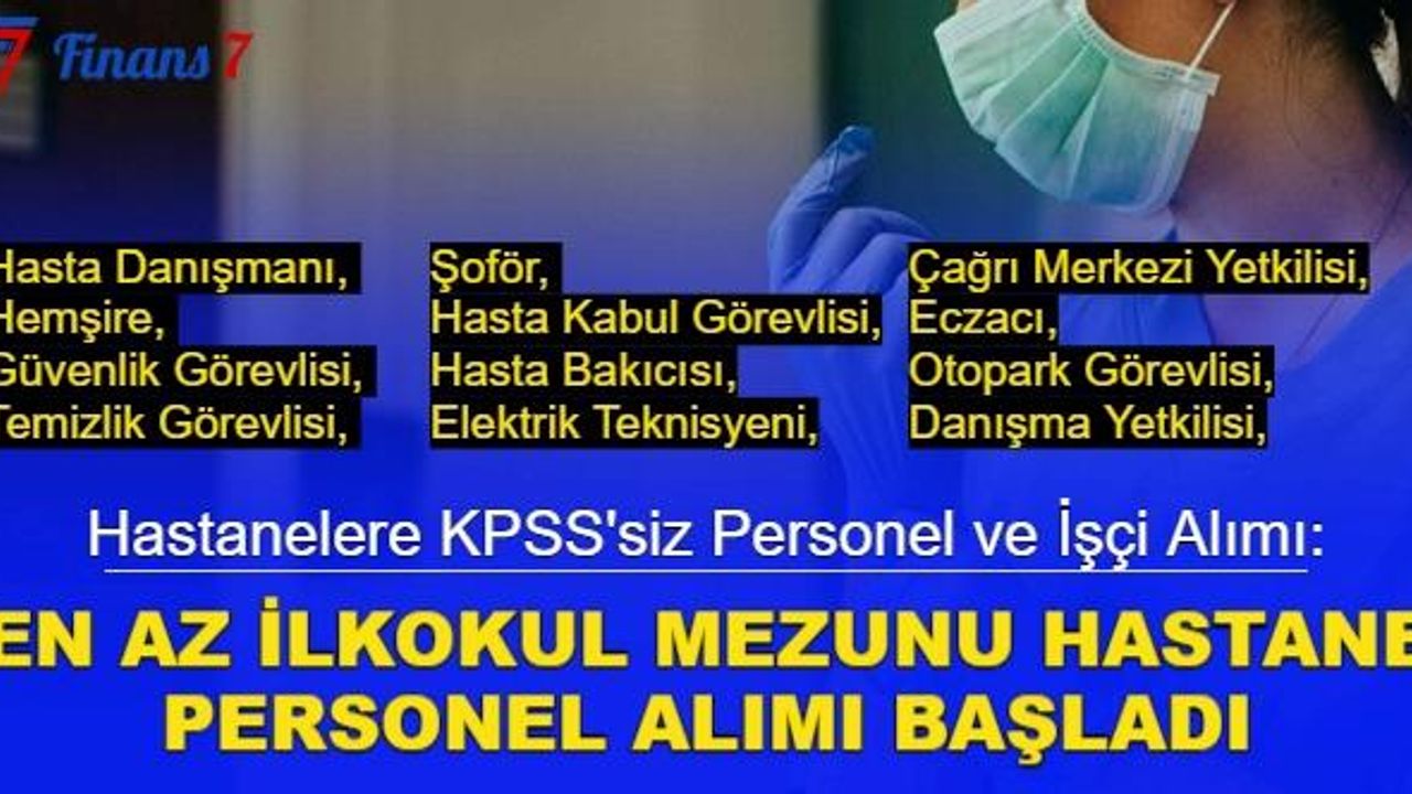 Hastaneler bünyesindeki eksikliği karşılamak üzere peş peşe yayımladıkları duyurular ile çok sayıda personel alımı yapılacağını açıkladı. Yayımlanan duyurulara baktığımızda en az ilkokul mezunu adaylar arasından KPSS şartı aranmaksızın farklı kadrolarda istihdam edilmek üzere personel alımı yapılacağı görüldü. Bizde bu yazımızda hastaneler tarafından yayımlanan ilanların başvuru detaylarına yer verdik.
