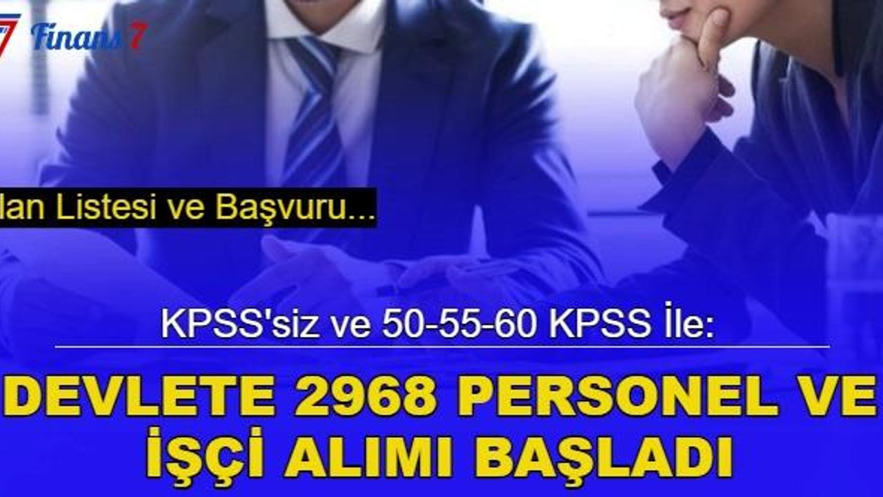 Kamuya KPSS'siz ve düşük KPSS ile 2968 personel alımı yapılacak.