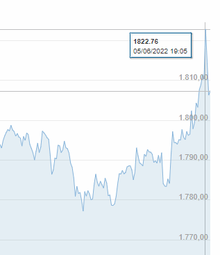 Bitcoin ile paralel olarak son günlerde düşüş eğiliminde olan ETH, az önce yükselişe geçti. Gelen son verilere göre 1 ETH 1799 dolar seviyesine kadar geldi. İşte Ethereum 'da değişim grafiği: