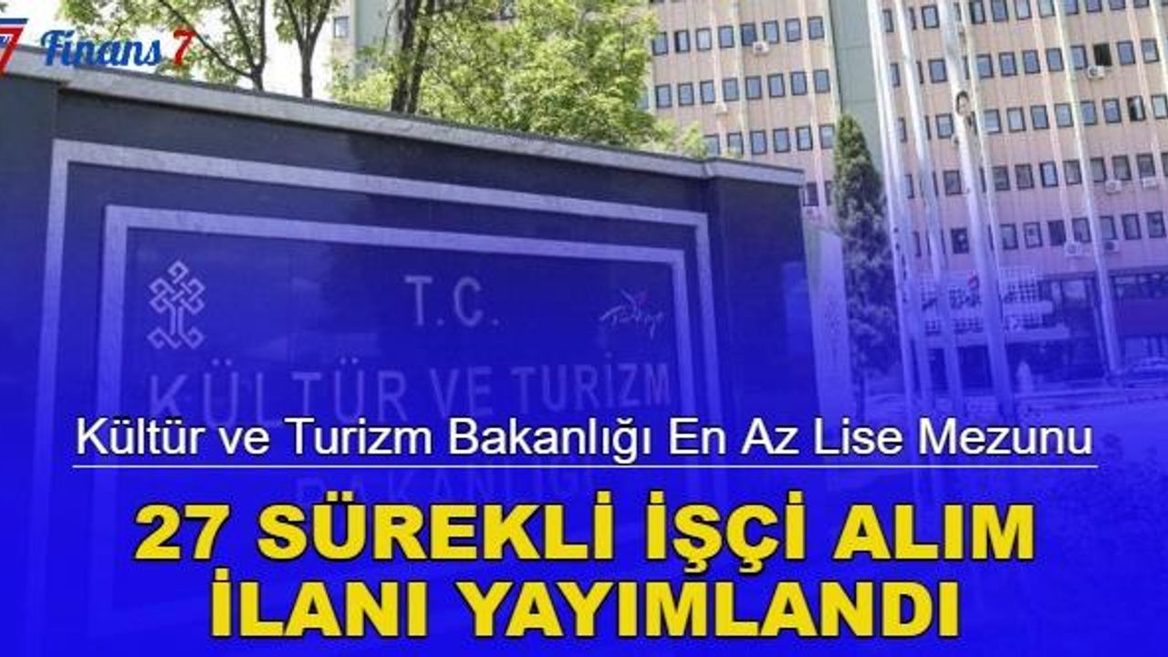 Son dakika: Kültür ve Turizm Bakanlığı 27 sürekli işçi alımı yapacak.