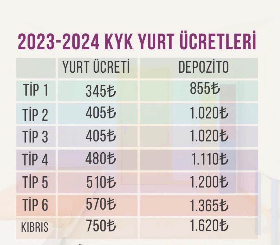 Söz konusu listeye baktığımızda yurt ücretlerinin şu şekilde olduğu görüldü: