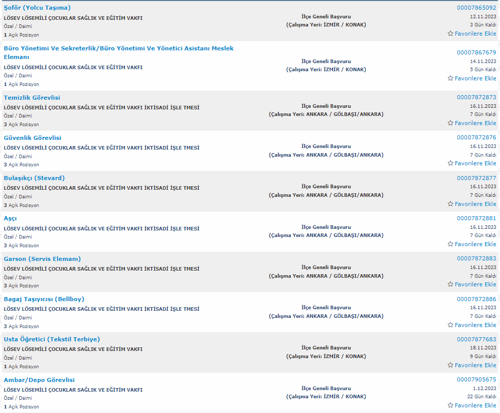 Türkiye İş Kurumu resmi internet adresi üzerinden bir son dakika açıklaması yapıldı ve farklı kadrolarda çalıştırılmak üzere LÖSEV'e personel ve işçi alımı yapılacağına yer verildi. Peki hangi illerde personel alımı yapılacak? Hangi kadrolarda personel alımı yapılacak? İşte başvuru detayları.