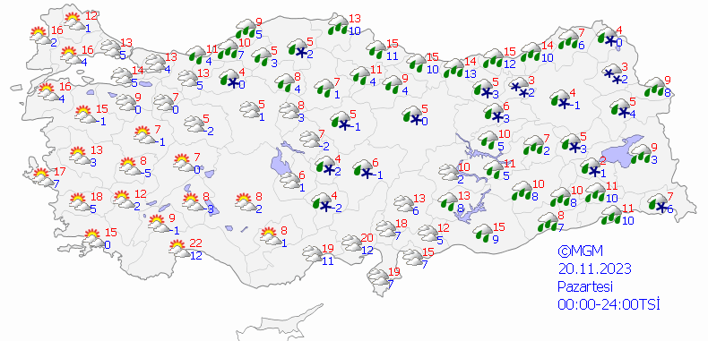 Yapılan son değerlendirmelere göre; bugün yurdun kuzeybatı kesimlerinde halen devam eden yağışların, yarın (Pazar) sabah saatlerinden sonra etkisini tekrar artırarak, kuvvetli batılı ve kuzeybatı rüzgar ile birlikte Kocaeli, Sakarya, Yalova, Bursa, Bilecik, Bolu, Düzce, Zonguldak, Bartın ve Karabük çevrelerinde kıyı kesimlerde kuvvetli yağmur ve sağanak (21-50 kg/m2), iç ve yüksek kesimlerde yoğun kar (20 cm üzeri) yağışı şeklinde olması beklendiğinden sel, su baskını, ağaç ve direk devrilmesi, çatı uçması, buzlanma ve don olayına bağlı ulaşımda aksamalar gibi olumsuzluklara karşı dikkatli ve tedbirli olunması gerekmektedir.