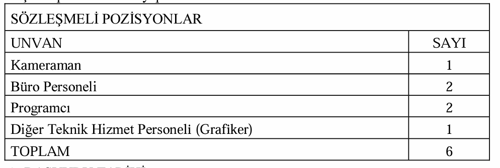 • Son başvuru tarihi itibarıyla kamu ya da özel sektördeki ulusal, yerel televizyonlar veya