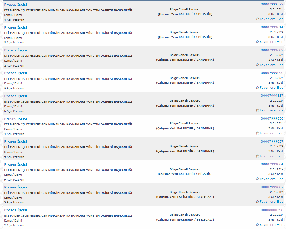 MEB, DSİ, ETİ Maden ve belediyelere KPSS'siz kamu işçisi alımı yapıyor.