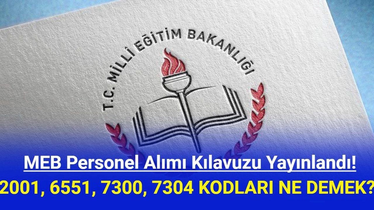 Milli Eğitim Bakanlığı personel alım kılavuzunu yayınladı. Yayınlanan kılavuza göre, MEB'e personel alımı yapılacak. Yayınlanan bu kılavuzda başvuru şartlarında bazı özel kodlar bulunuyor. Bu kodlar 2001, 6551, 7300, 7304, şeklinde. Peki bu 2001, 6551, 7300, 7304, kodları ne demek, ne anlama geliyor? İşte bu kodların açıklamaları...