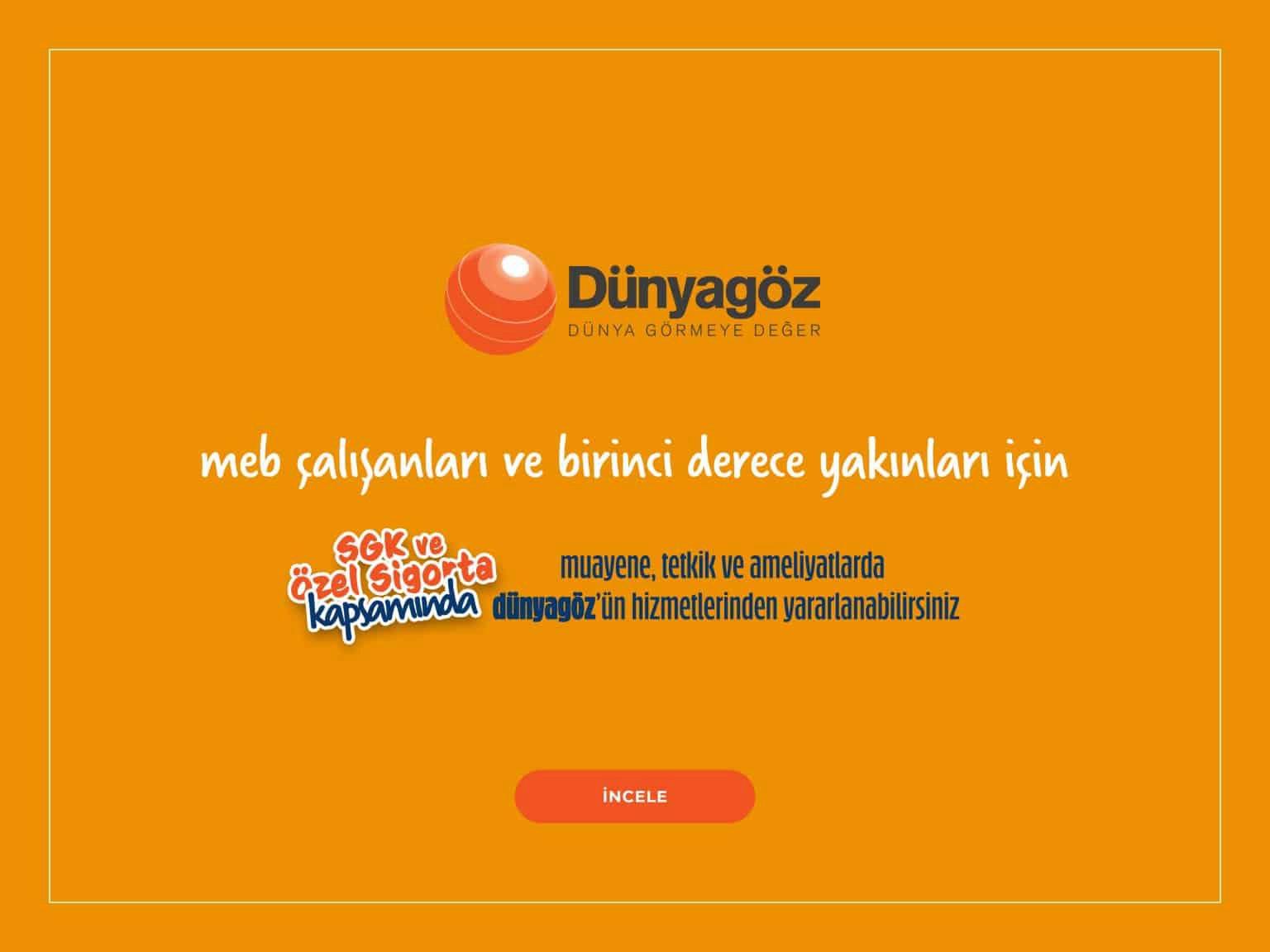 Dünya Göz'de SGK ve Özel Sigorta kapsamında öğretmen ile birinci derece yakınlarına muayene, tetkik ve ameliyatlar.