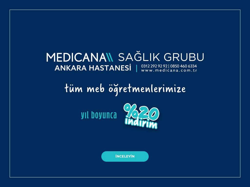 Medicana Ankara Hastanesi'nde yıl boyunca tüm öğretmenlere yüzde 20 indirim uygulanacak.