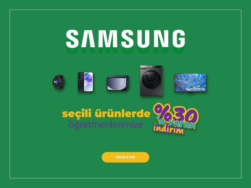 Samsung marka telefonlar, akıllı saat, tablet, çamaşır makinesi ve televizyonlarda yüzde 30 indirim uygulanacağı bildirildi.