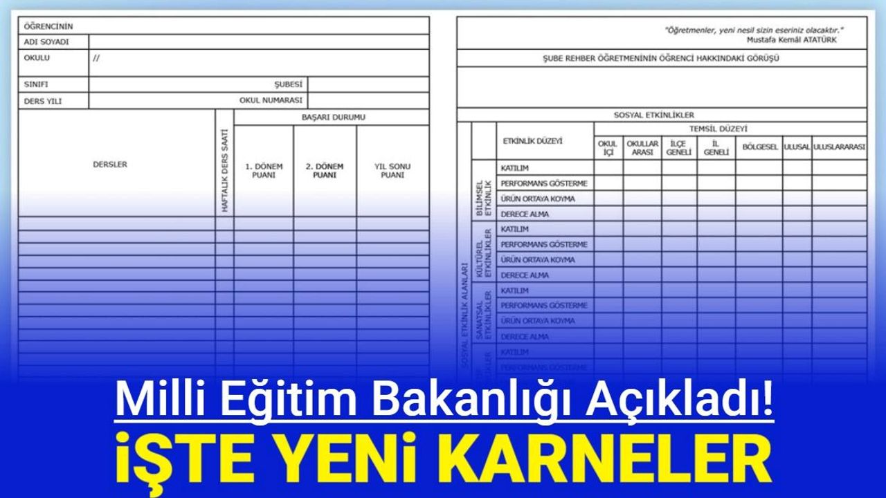 Milli Eğitim Bakanlığı tarafından bir açıklama yapıldı. Yapılan açıklamada yeni eğitim öğretim döneminde öğrencilere verilecek yeni karnelere yer verildi.