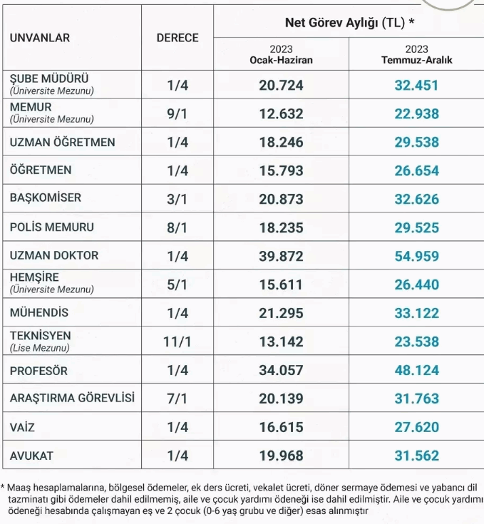 Memur ve emeklilerin alacakları maaşların tablosu belli oldu.