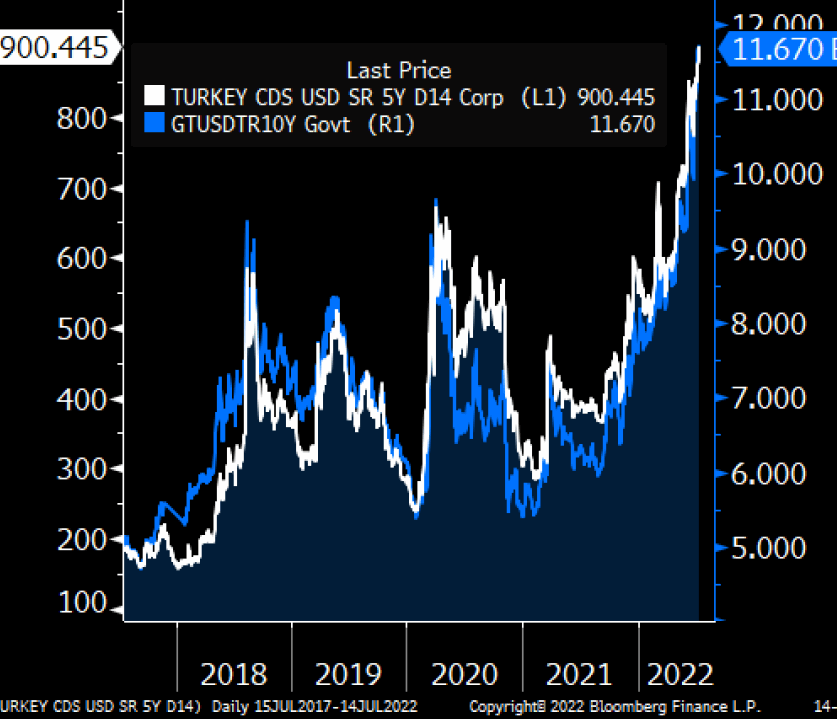 Türkiye'nin risk primi haftanın ilk gününde hızlı bir şekilde yükseldi ve 805 baz puana kadar çıkarak 29 Temmuz tarihinden bu yana en yüksek seviyesine kadar yükseldi.