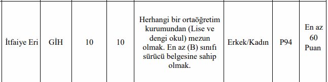 1. İlan edilen itfaiye eri kadro unvanı için mezun olunan okul itibariyle öğrenim şartlarını taşımak ve