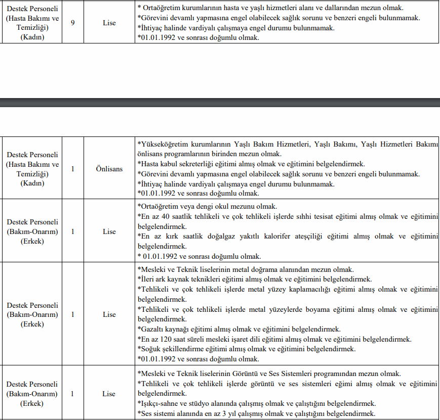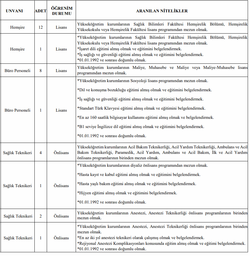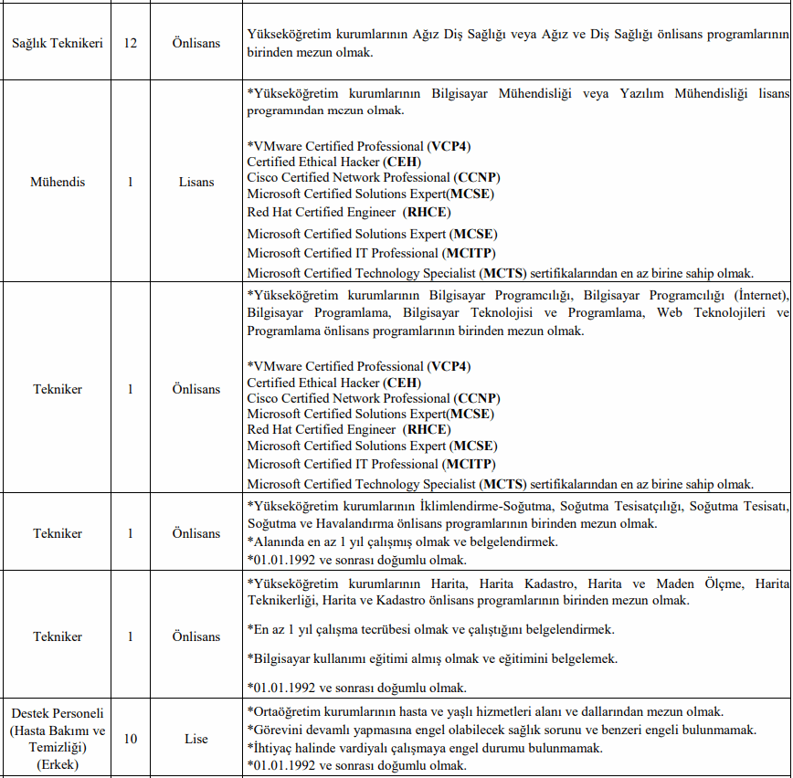 konu unvanda çalışılıp çalışılmadığının belgelendirilmesi gerekmektedir.) İlave belge istenen pozisyonlar için adayların istenilen belgeleri şahsen müracaat