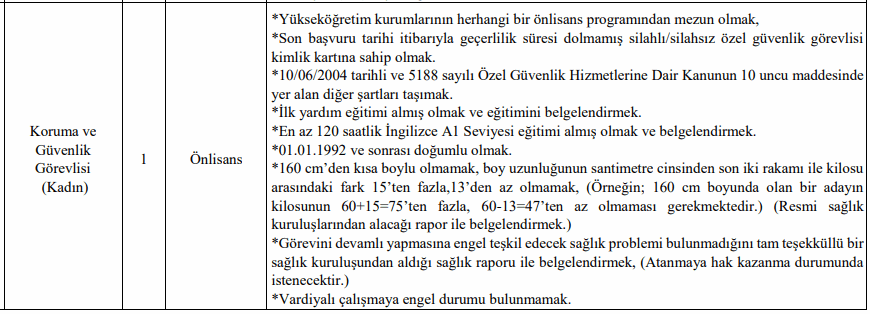 - Tercih edilecek pozisyonun karşısında yer alan şartları taşıyor olmak,