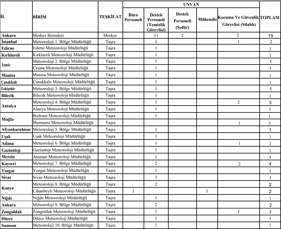 Meteoroloji Genel Müdürlüğü tarafından bir son dakika açıklaması yapıldı. Yapılan açıklamada en az lise mezunları arasından 78 personel alımı yapılacağına yer verildi. Yayınlanan ilana baktığımızda alınacak adayların mühendis, büro personeli, temizlik personeli, şoför ve güvenlik görevlisi kadrolarında istihdam edileceği görüldü. Peki İlanın başvuru bilgileri nedir? MGM personel alımı başvuru şartları nelerdir? İşte son dakika bilgileri.