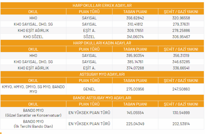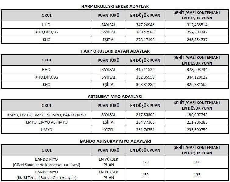 Sağlık aşamasını da geçenler Harp Okulları ile Astsubay MYO'lara yerleştirilecek.