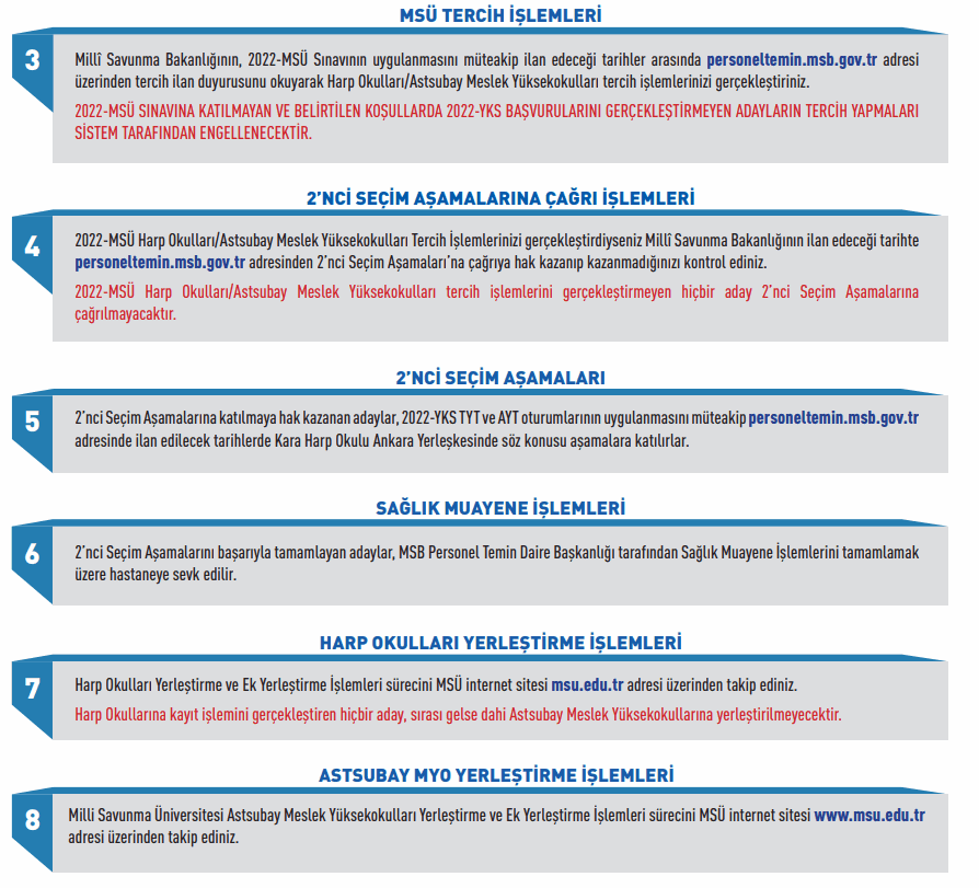 ÖSYM tarafından 2022 yılı Milli Savunma Üniversitesi sınav sonuçlarının açıklanmasının ardından izlenecek süreç, MSÜ resmi internet sayfası üzerinden şu şekilde açıklandı: