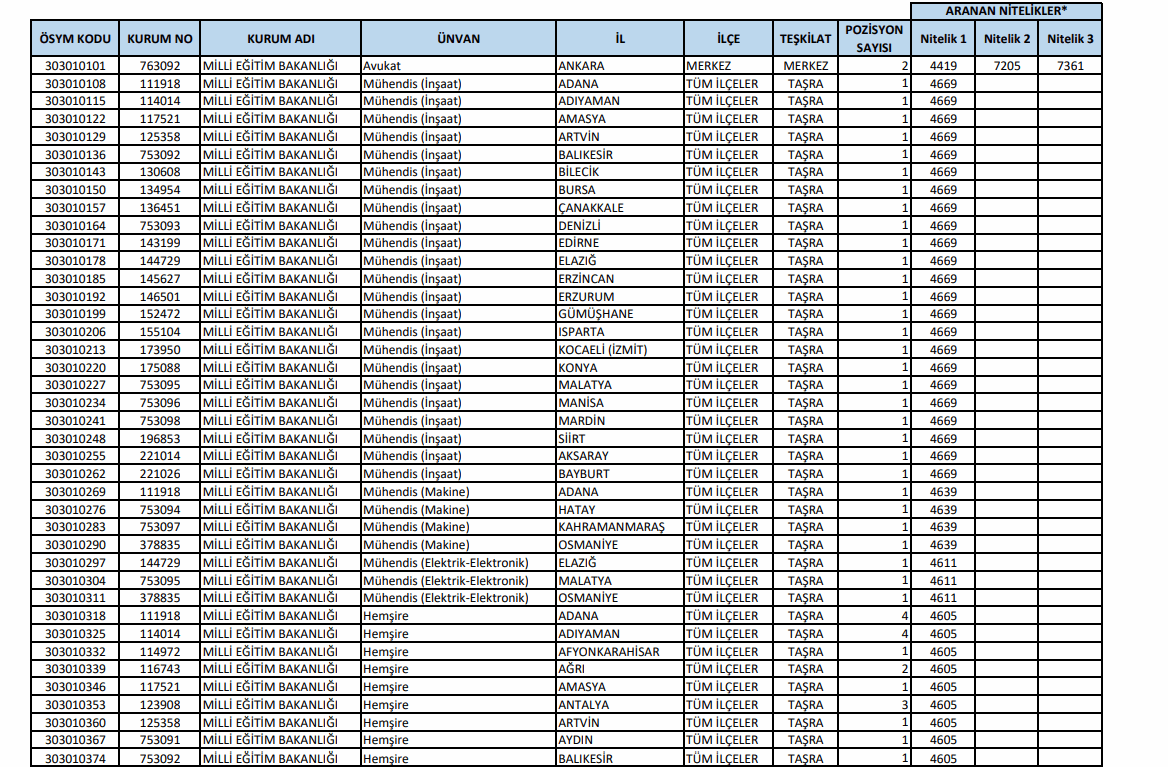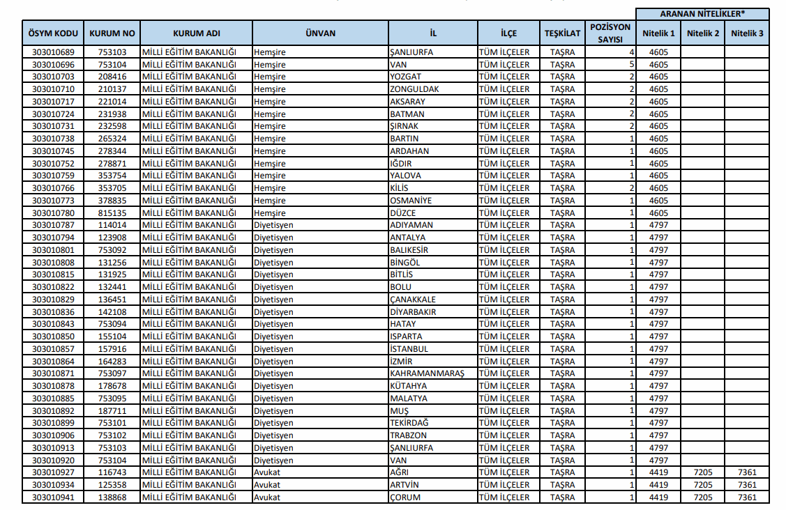 Milli Eğitim Bakanlığı personel alım ilanı geldi. ÖSYM üzerinden gelen son dakika açıklamasına baktığımızda Milli Eğitim Bakanlığı bünyesinde istihdam edilmek üzere diyetisyen, avukat, hemşire, mühendis, büro personeli alımı yapılacağına yer verildi. Bizde bu yazımızda mülakat şartı olmadan yapılacak personel alım ilanlarının detaylarına yer verdik. İşte kadrolar ve başvuru bilgisi.