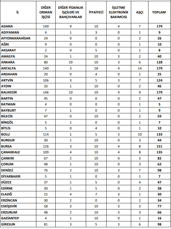 Diğer Orman İşçisi Kadrosu