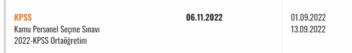 Sınav başvurusu 1 ile 13 Eylül 2022 tarihleri arasında alınacak. Başvuruların alınmasından sonra sınav 6 Kasım 2022 tarihinde 81 ilde bulunan okullarda, sınav merkezlerinde yapılacak.