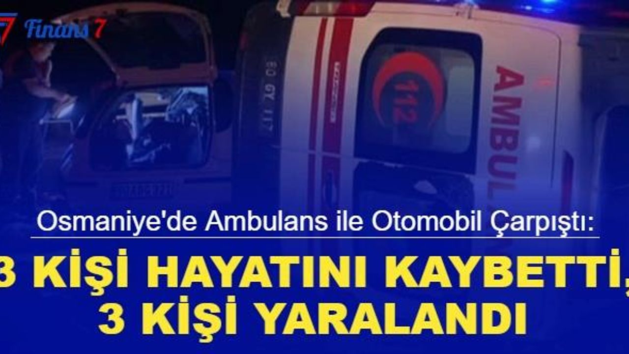 Osmaniye'den bir son dakika haberi geldi. Otomobil ile ambulansın çarpışması sonucu meydana gelen kazada 3 kişi hayatını kaybederken, 3 kişi de yaralandı.