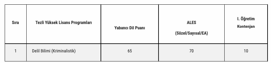 ADLİ BİLİMLER ENSTİTÜSÜ LİSANSÜSTÜ EĞİTİM PROGRAMLARINA ÖĞRENCİ ALIMI KONTENJANLARI: