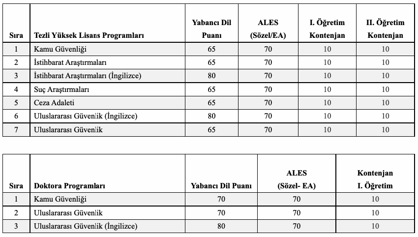 Polis Akademisi, farklı lisansüstü birimlerine öğrenci alımı yapılacak. Kontenjan dağılımı ve detaylar haberimizde...