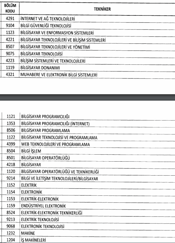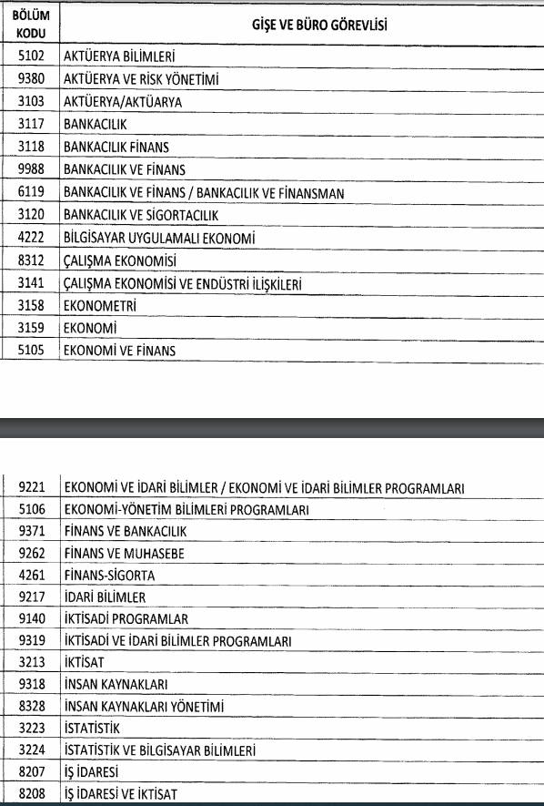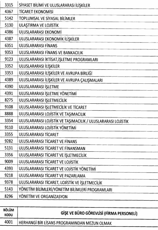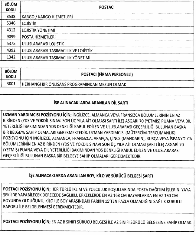 PTT personel alımı aşağıdaki kadrolara olacak: