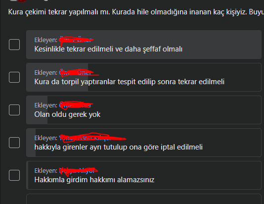 Söz konusu ankete baktığımızda kurada bir sıkıntı olduğunu düşünenlerin oranı ciddi derecede fazla. Siz de ankete katılmak için TIKLAYIN (Açılan sayfada takip isteği yollayın. Onay sonrası ankete katılıp oy kullanabilirsiniz)