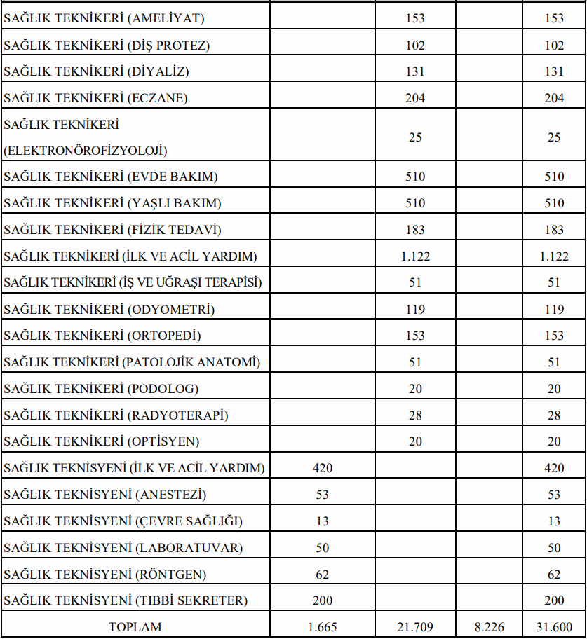 Sağlık Bakanlığı tarafından bir son dakika açıklaması yapıldı ve 31 bin 600 sözleşmeli sağlık personeli alımında branş dağılımına yer verildi. Yayınlanan duyuruda şu ifadelere yer verildi: