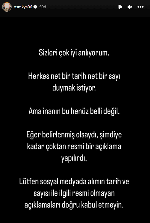Sizleri çok iyi anlıyorum. Herkes net bir tarih net bir sayı duymak istiyor. Ama inanın bu henüz belli değil. Eğer belirlenmmiş olsaydı, şimdiye kadar çoktan resmi bir açıklama yapılırdı.