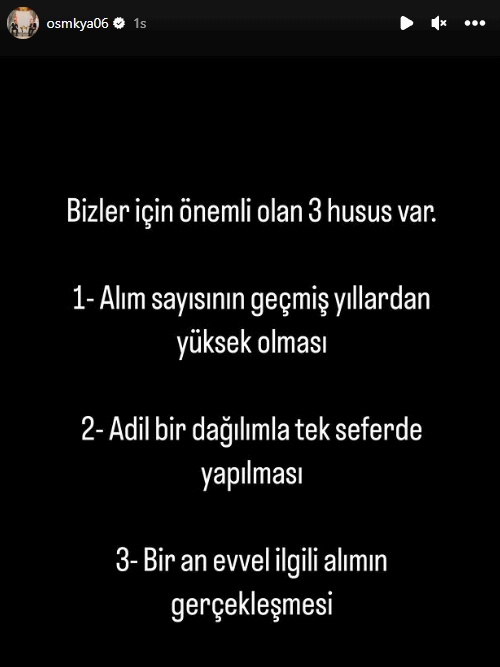 Bizler için önemli olan 3 husus var: Alım sayısının geçmiş yıllardan yüksek olması, Adil bir dağılımla tek seferde yapılması, Bir an evvel ilgili alımın gerçekleşmesi.