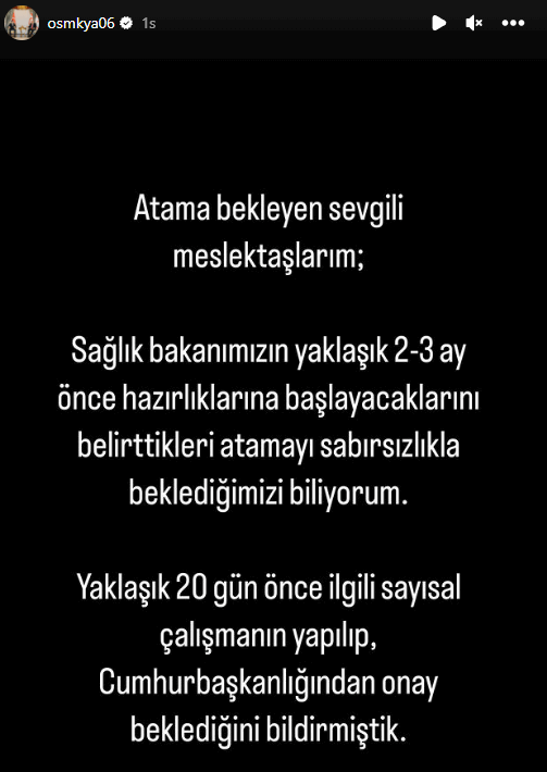 Genç Sağlık Sendikası Genel Başkanı Osman Kaya sosyal medta hesabı üzerinden yaptığı son dakika açıklamasında personel alımında son durumu paylaştı. Kaya yaptığı açıklamada "Atama bekleyen sevgfili meslektaşlarım; Sağlık Bakanımızın yaklaşık 2-3 ay önce hazırlıklarına başlayacaklarını belirttikleri atamayı sabırsızlıkla beklediğimizi biliyorum.