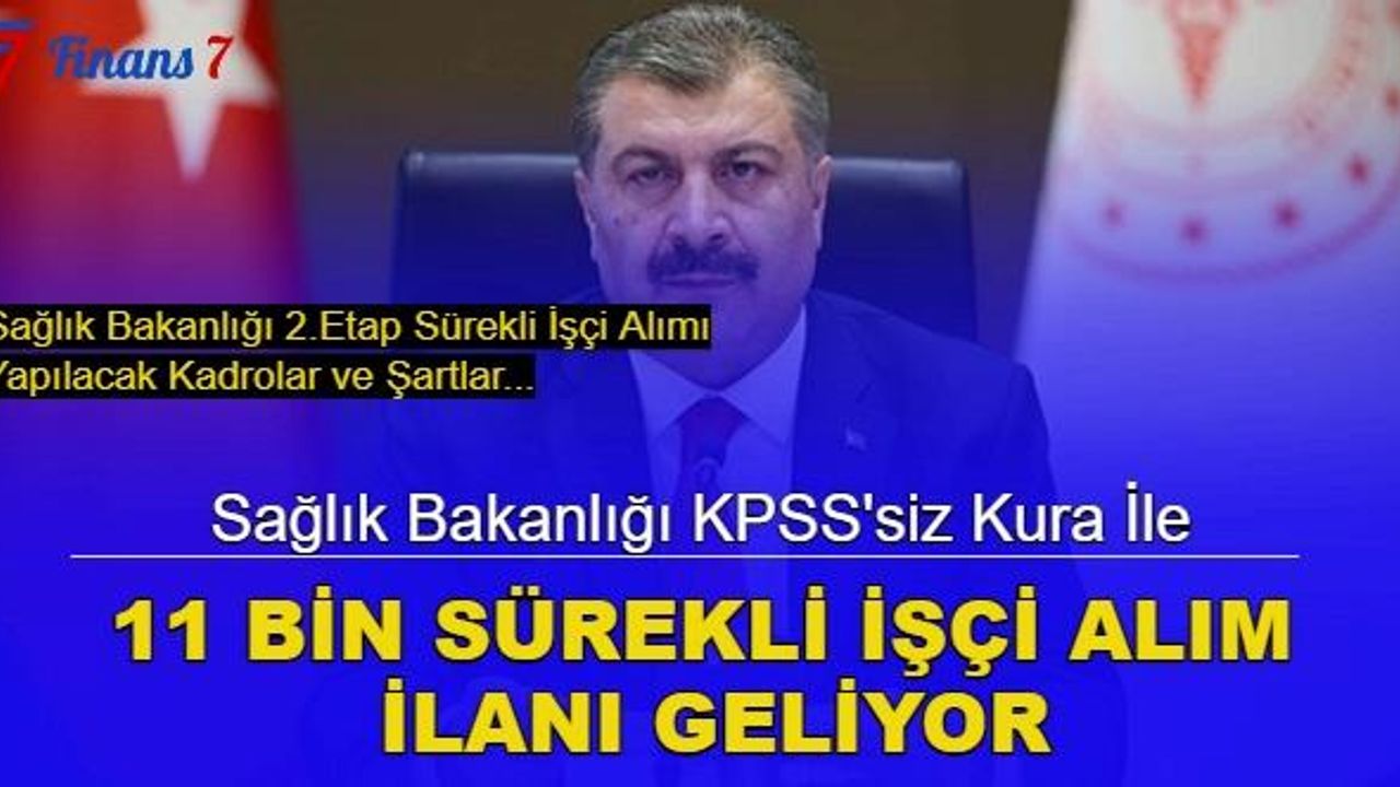 Sağlık Bakanlığı bünyesindeki eksikliği karşılamak üzere 81 ilde bulunan hastanelere KPSS'siz ve kura ile 11 binden fazla sürekli işçi alımı yapacak. Binlerce adayın heyecanla beklediği ilan için geçtiğimiz gün Sağlık Bakanı Fahrettin Koca'dan yeni bir açıklama geldi. Bakan Koca yaptığı açıklamada ilanın onayda olduğunu bildirdi. Koca'nın açıklamalarının ardından ilan ile ilgili araçtırmalar hız kazandı. Bizde bu yazımızda beklenen ilan ilgili başvuru detaylarına yer verdik. İşte Sağlık Bakanlığı 2.etap sürekli işçi alımı ilgili merak edilenler.