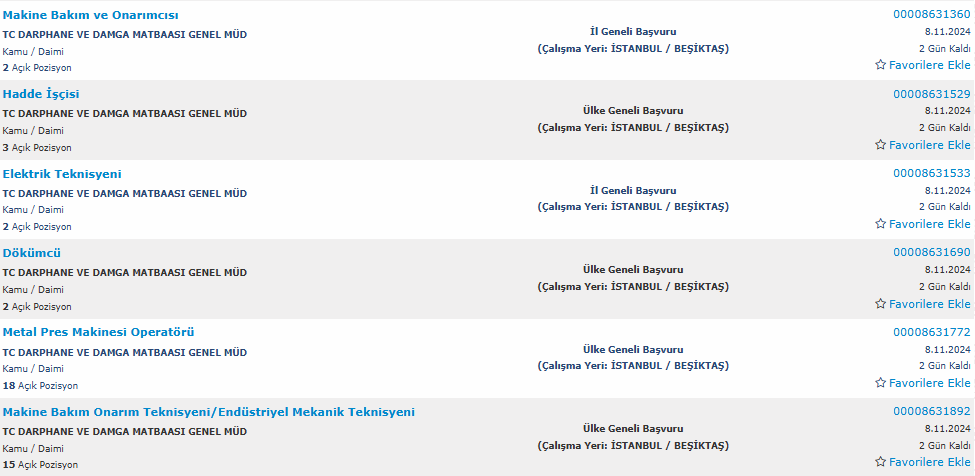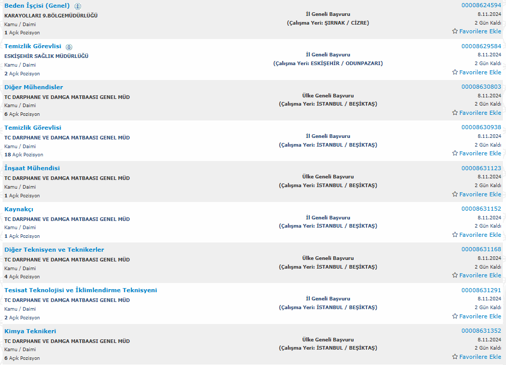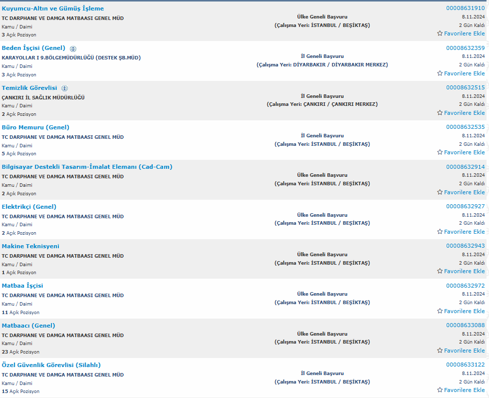 Sağlık Müdürlüğü, Darphane, EGM ve MEB kamu personel alımı yapacak.
