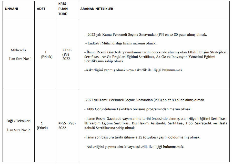 İlana başvurular 17 Temmuz ile 31 Temmuz tarihleri arasında ' Kariyer Kapısı' (https://isealimkariyerkapisi.cbiko.gov.tr) internet adresi üzerinden yapılacaktır. Şahsen başvuru alınmayacak, posta veya diğer yollarla yapılan müracaatlar kabul edilmeyecektir.