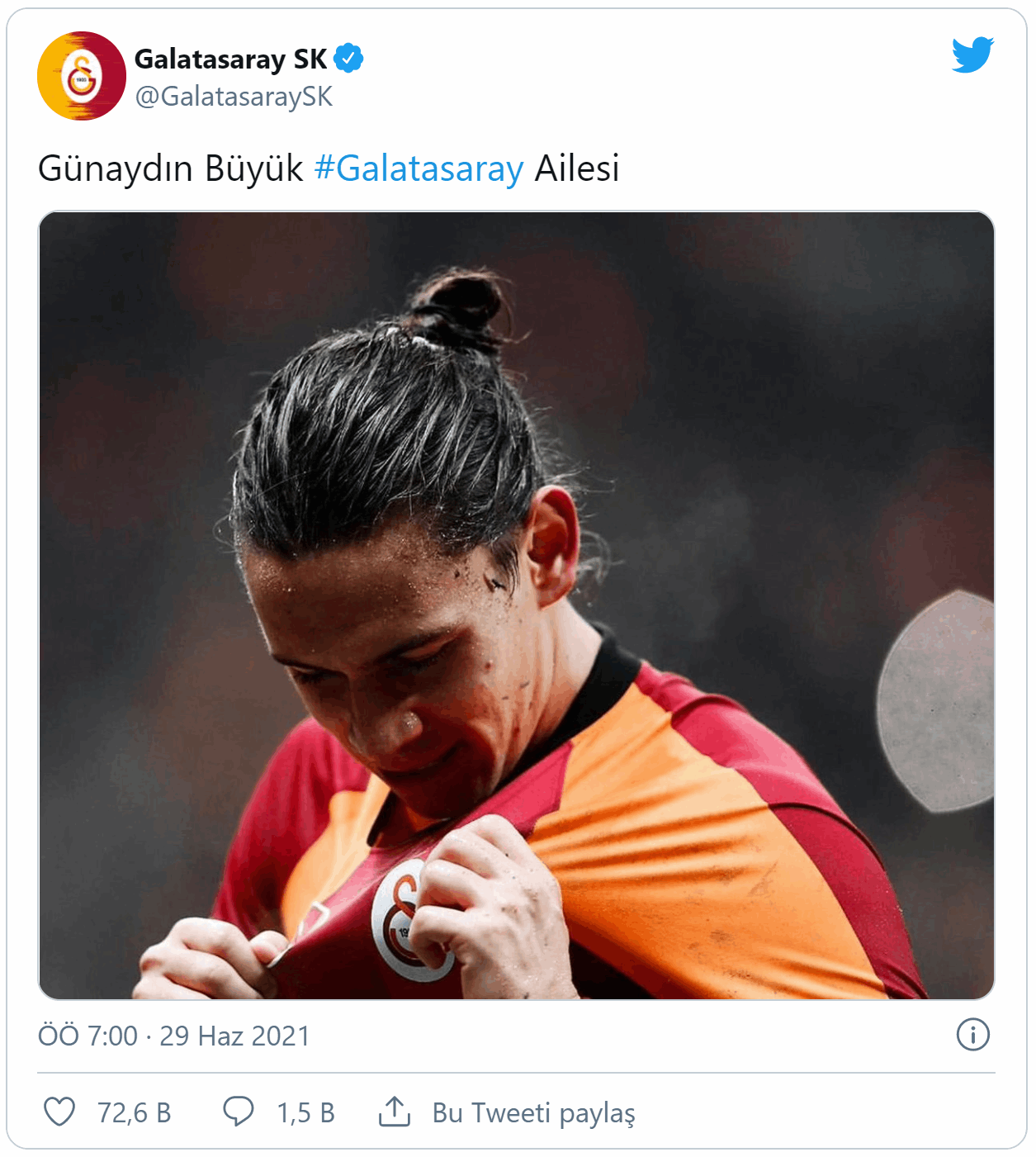 Galatasaray resmi hesabından yapılan paylaşımda Taylan Antalyalı'nın fotoğrafı paylaşılırken, "Günaydın Büyük Galatasaray Ailesi" notu düşüldü.