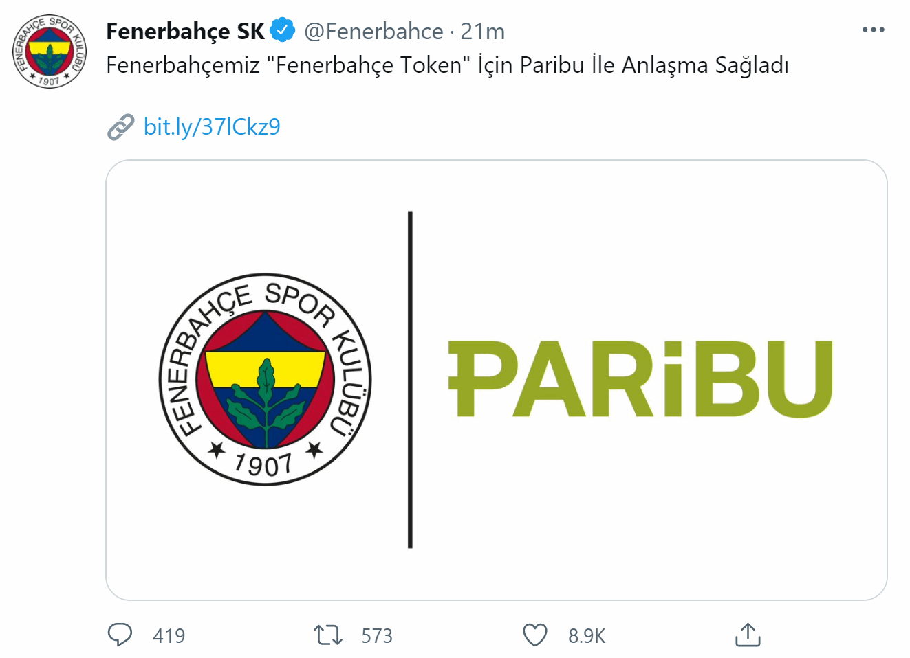 "Paribu ile olan bu iş birliğimiz kapsamında, Fenerbahçemizin en büyük gücü olan taraftarlarımıza taraftar token’ı olarak tanımlanan kripto varlıklara sahip olma fırsatı sunulacaktır.