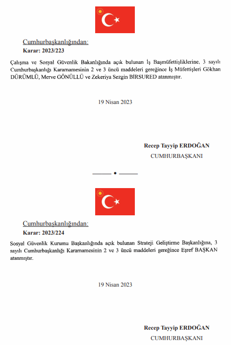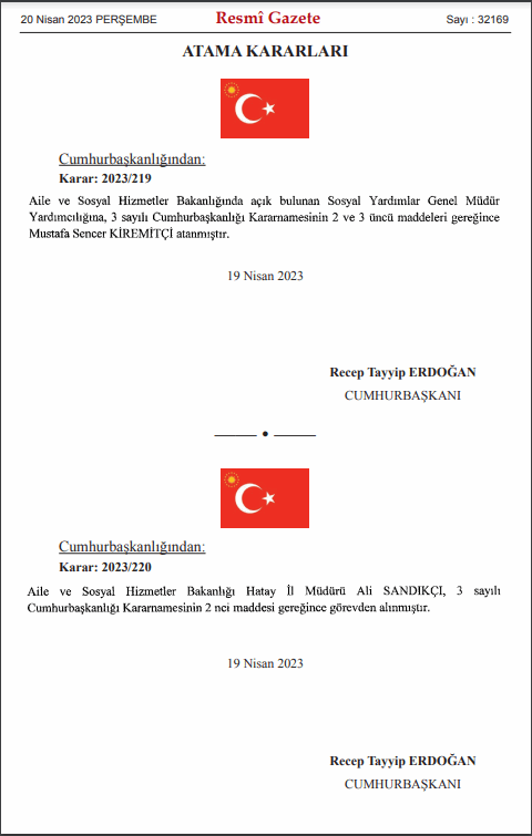20 Nisan 2023 Resmi Gazete Atama Kararı: