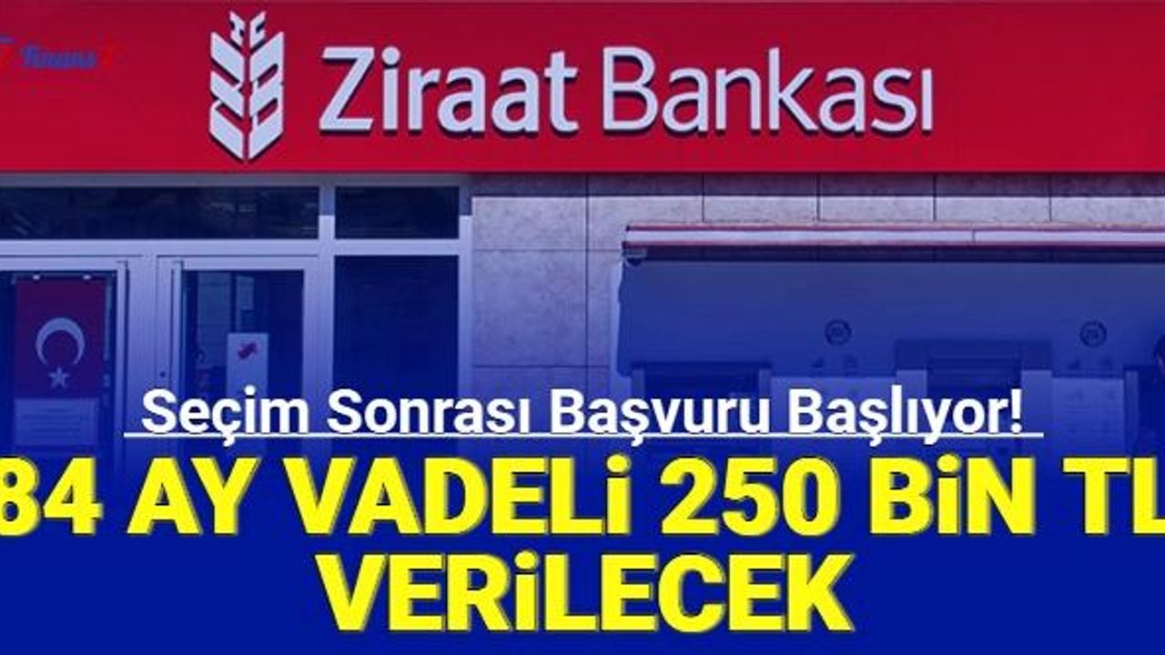 Ziraat Bankası'ndan seçim sonrası 84 ay vadeli 250 bin TL kredi.