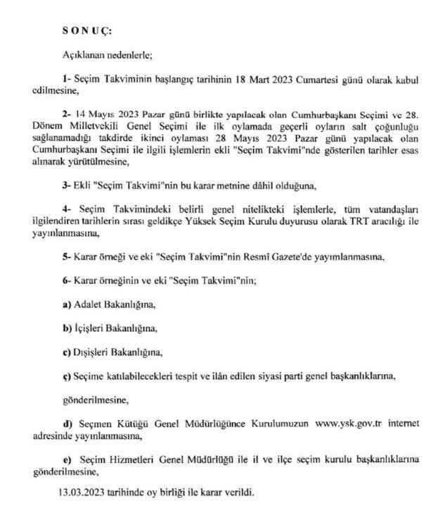 Buna göre, Cumhurbaşkanlığı seçimleri ilk turu 14 Mayıs'ta, ikinci tur ise 28 Mayıs'ta gerçekleştirilecek.