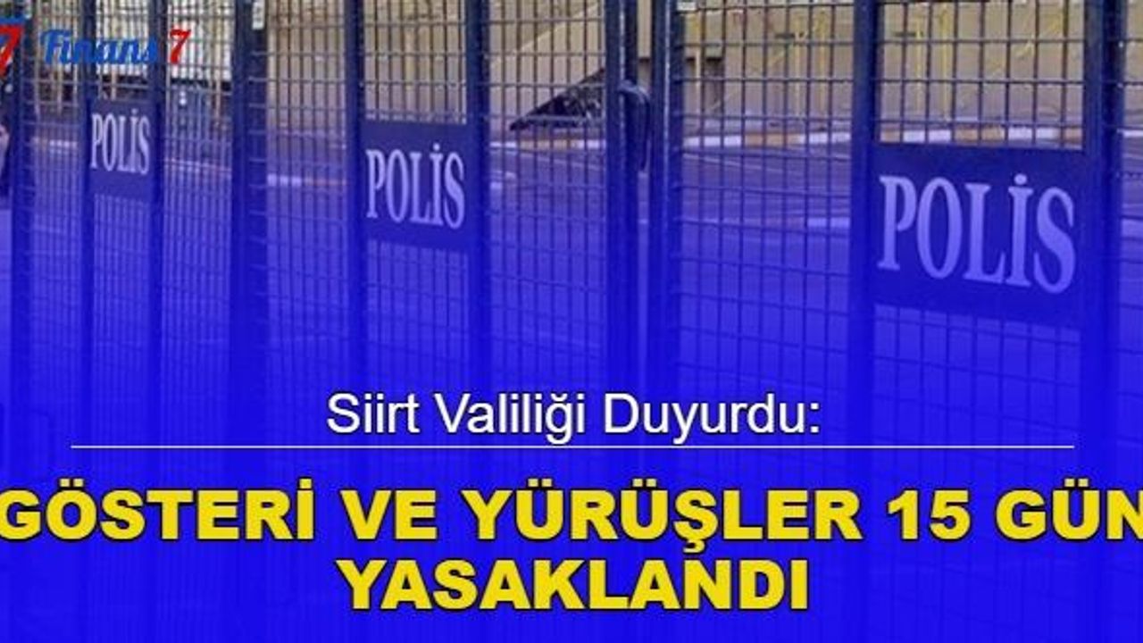 Son dakika: Siirt'te gösteri ve yürüyüşler 15 gün süreyle yasaklandı.