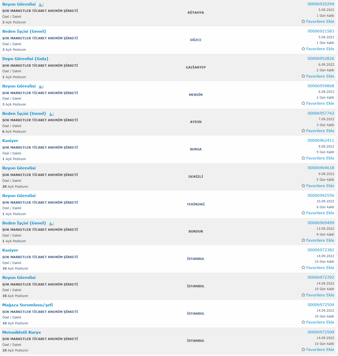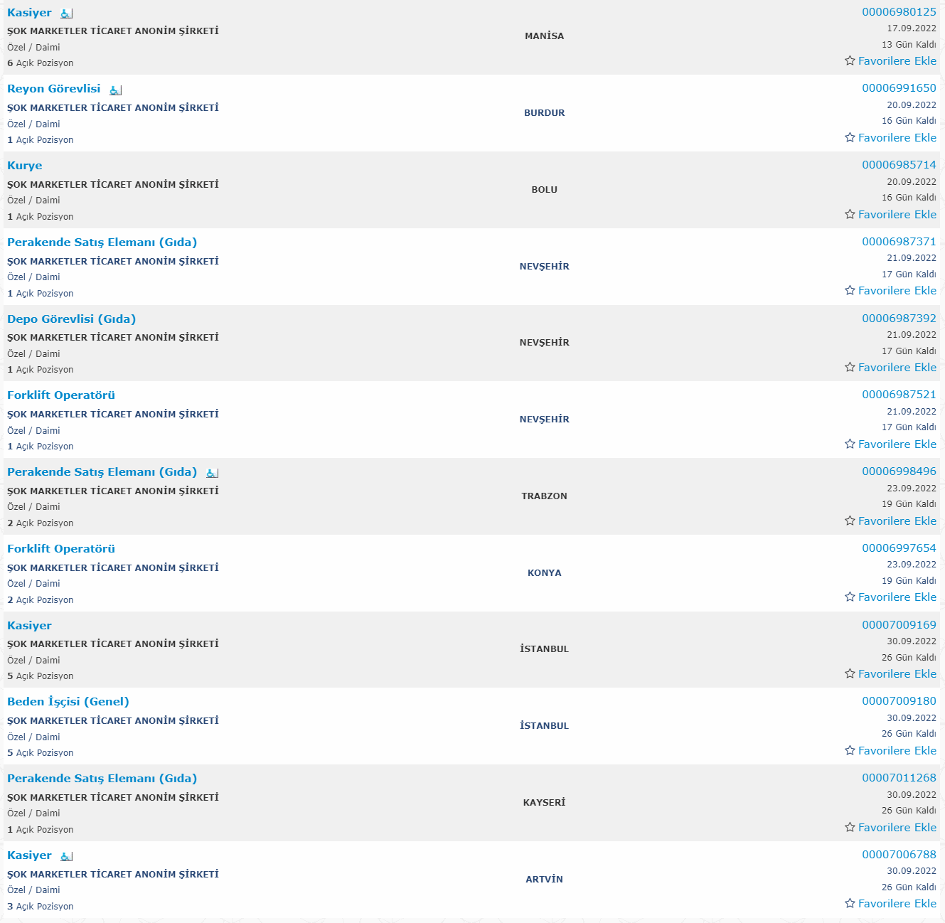 ŞOK Personel alımı başvurularının İŞKUR üzerinden yapılacağı belirtildi. ŞOK bünyesinde çalışmak için aşağıdaki linkten başvuru yapabilirsiniz.